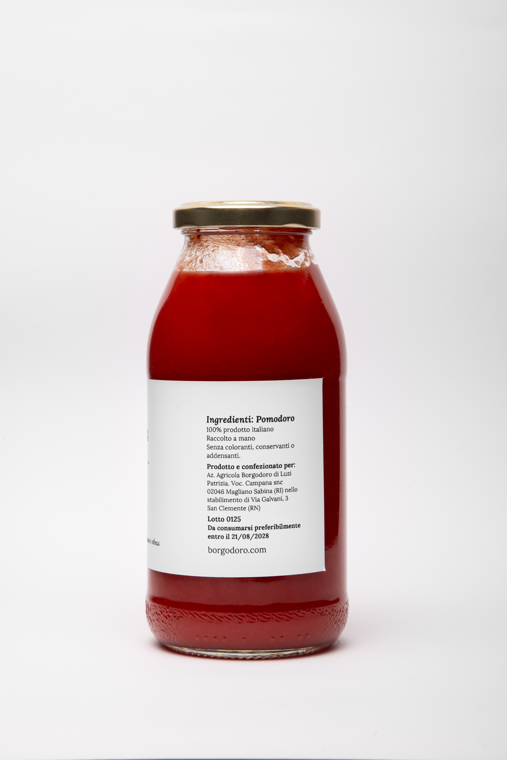 Non aggiungiamo coloranti, addensanti o conservanti, mantenendo intatta la freschezza e il gusto del pomodoro.